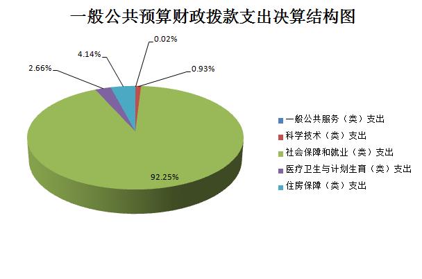 2017年度一般公共预算财政拨款支出3500.85万元,主要用于以下方面:一般公共服务(类)支出0.50万元,占0.02%;科学技术(类)支出32.68万元,占0.93%;社会保障和就业(类)支出3229.49万元,占92.25%;医疗卫生与计划生育(类)支出93.26万元,占2.66%;住房保障(类)支出144.92万元,占4.14%。