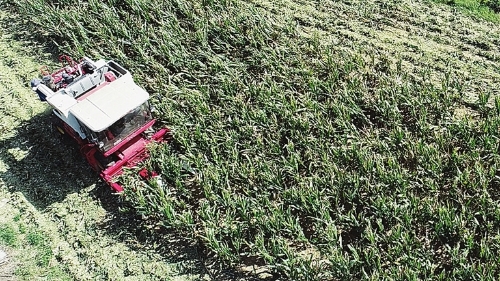 日前 ,威海市首台玉米籽粒收获机在我市小落村投入使用。该机型更换相应部件后可实现收获小麦、玉米、大豆等多种作物,实现一机多用。在玉米收获时,免除了传统手工掰玉米、运输、剥皮、晾晒、脱离等繁琐环节,直接实现籽粒直收,玉米的脱净率、损失率、破碎率均达到理想水平。