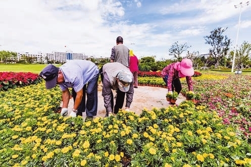 连日来,市园林绿化服务中心集中力量抓好城区绿化美化工作。在市民文化活动公园、樱花湖体育公园、滨海公园三中入口等处,园林工人分别摆放了紫苑、球菊、龙血树、鸭掌木、国庆菊、金鱼草等10多个品种的花草28万盆;在府东路、府西路和荣成博物馆附近等绿化带栽植苗木12万多株;在成山大道的蒲头桥、崖头河桥、十里河桥、桑干河植物园桥悬挂花草3万盆,城区面貌焕然一新,庆国庆、迎宾客。