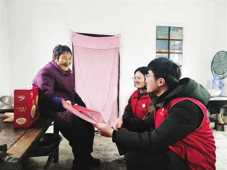 港西镇青年志愿者在春节前为失独老人送去节日慰问。