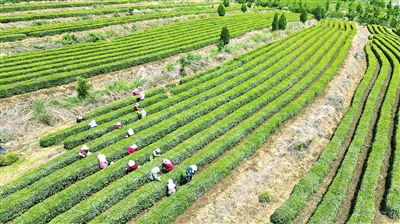 眼下,王连街道的千亩茶园正式进入春茶采收季。在王连街道赵家山下的一处茶园里,处处是茶农忙碌的身影,茶叶青翠碧绿,徐徐暖风中尽是茶香。