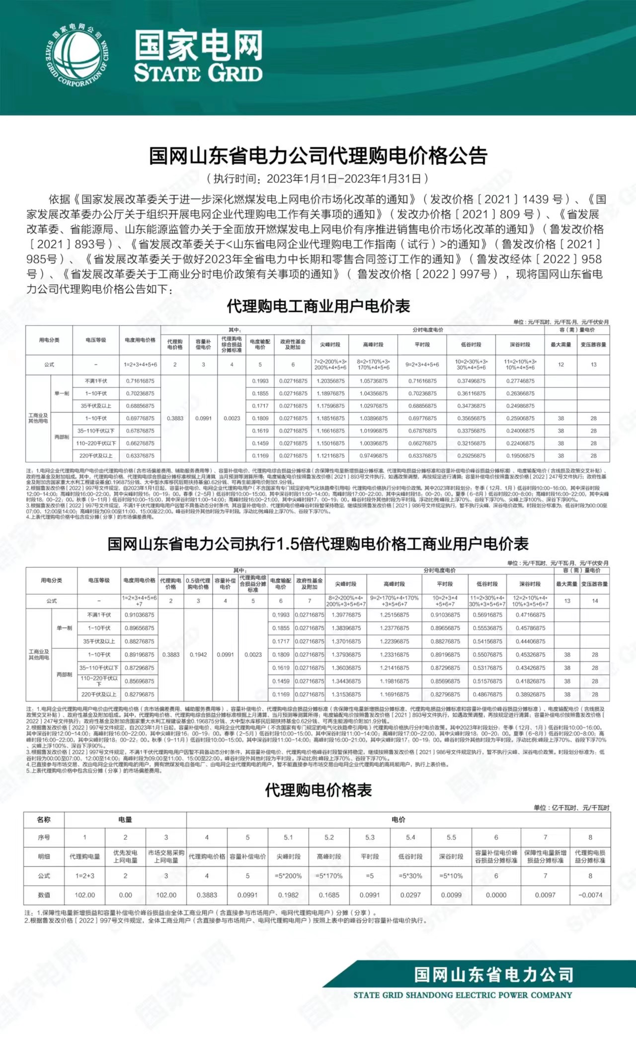 【获得电力】国网山东省电力公司关于2023年1月代理购电价格公告