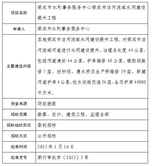 荣成市水利事务服务中心荣成市沽河流域水网建设提升工程招标投标核准结果公示