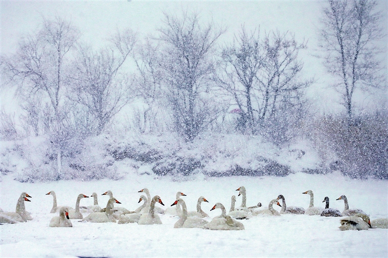 大天鹅或在雪里嬉戏鸣叫,或在岸边信步觅食,或在空中展翅飞翔,点缀了冬日荣成,是城市形象的一张亮丽名片。