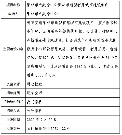 荣成市大数据中心荣成市新型智慧城市建设项目招标投标核准结果公示