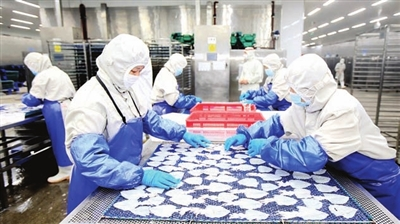 近年来,我市深耕海洋食品产业链,由简单加工逐步转型精深加工,构建起了以海洋食品为特色的冷冻调理食品、休闲即食食品、海产罐头等产品体系。