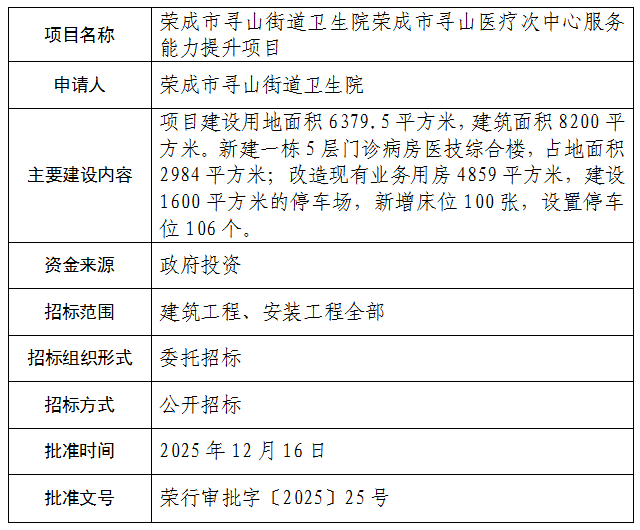 荣成市寻山街道卫生院荣成市寻山医疗次中心服务能力提升项目招标投标核准结果公示