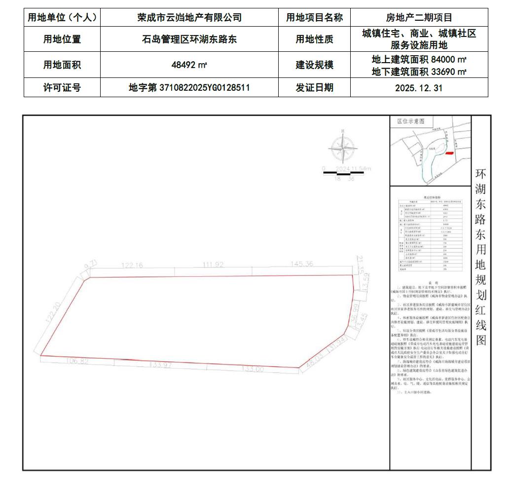 【批后公布】荣成市云岿地产有限公司房地产二期项目建设用地规划许可(出让)