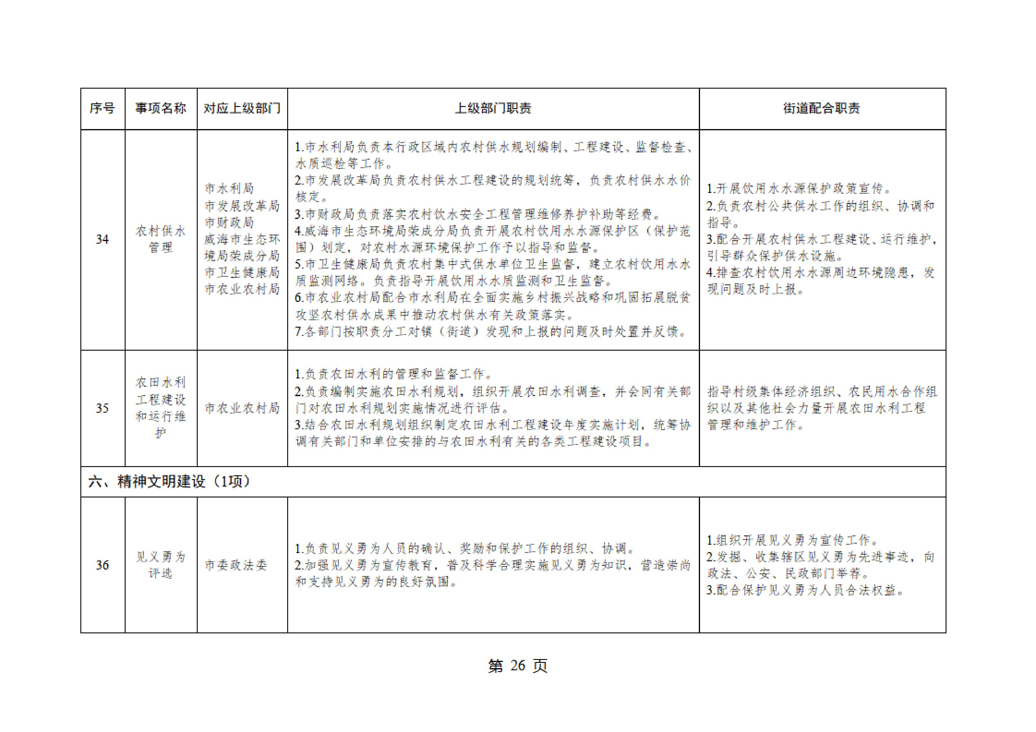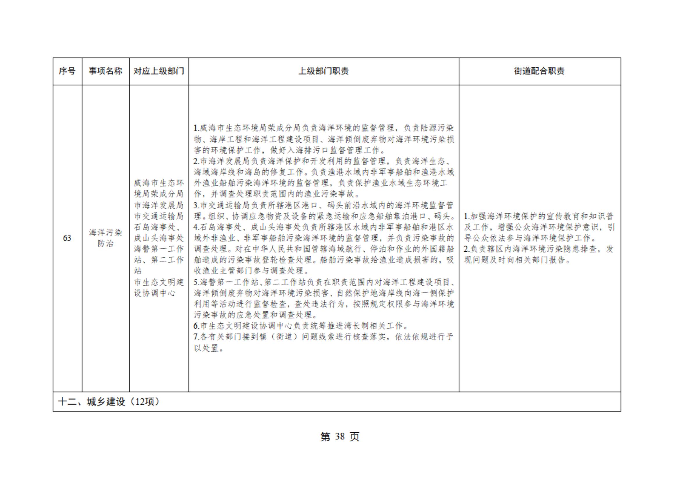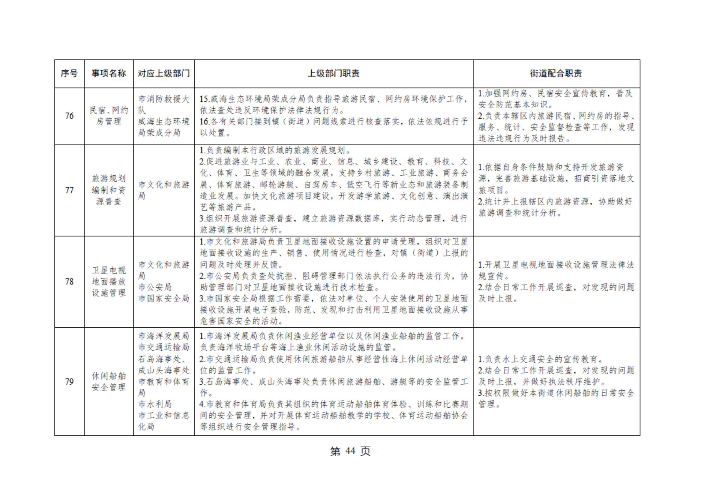 山东省威海市荣成市斥山街道办事处履行职责事项清单