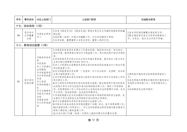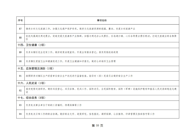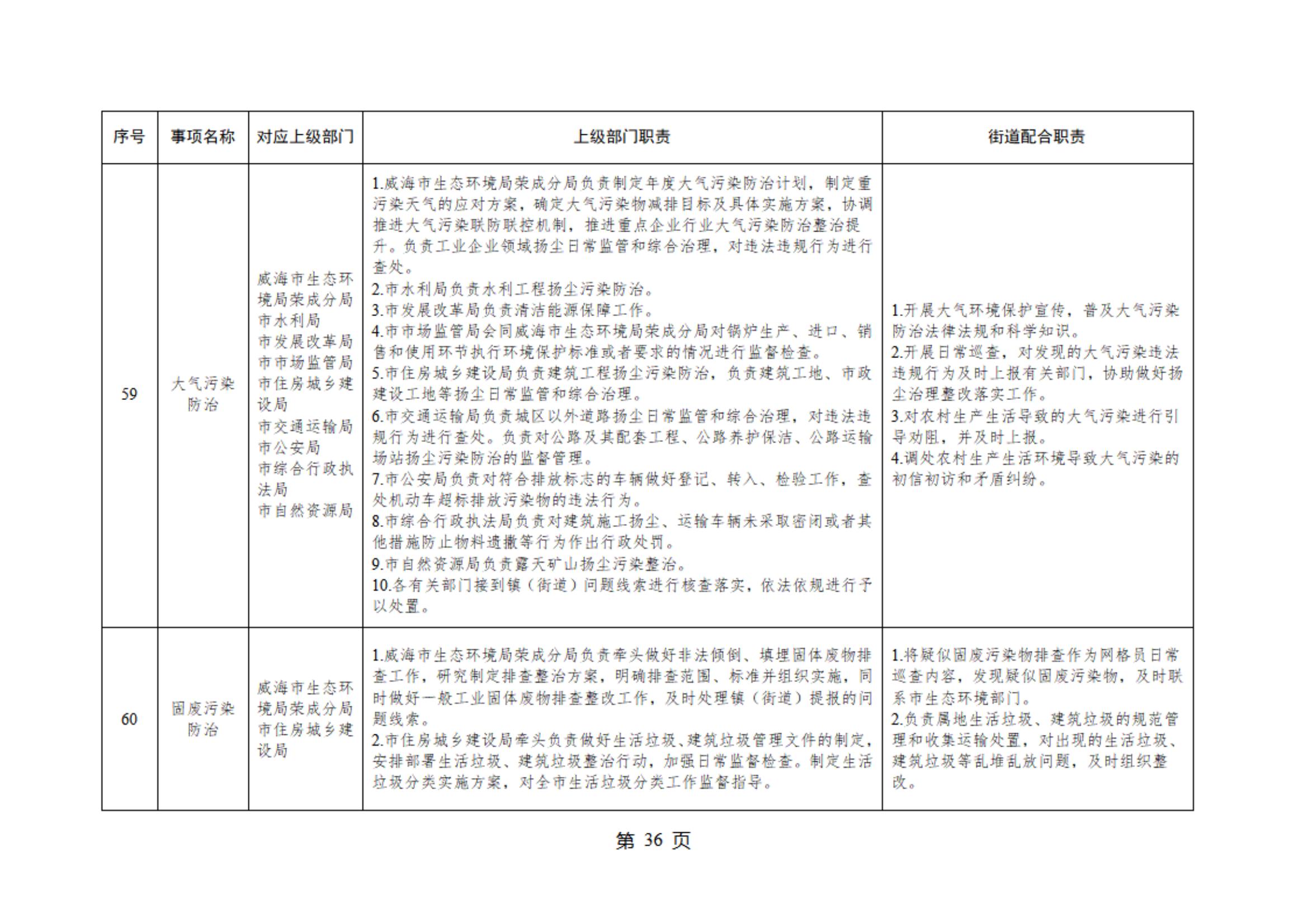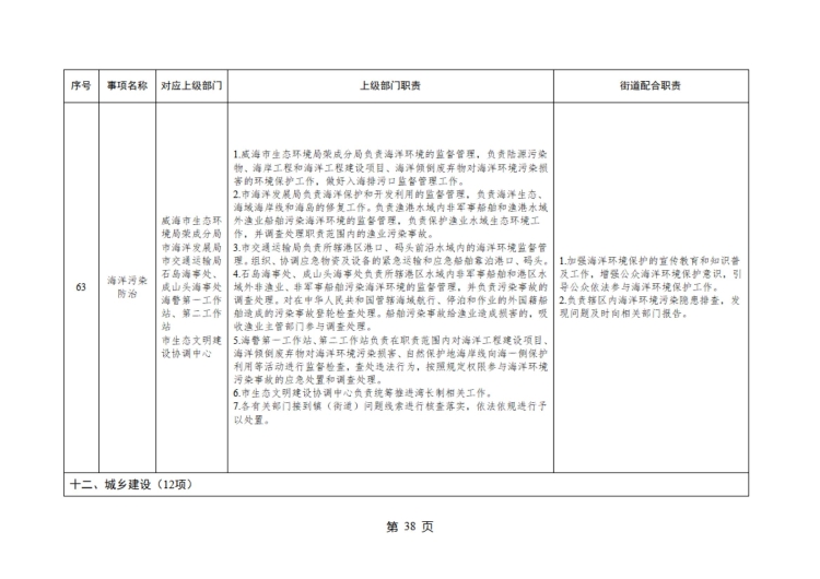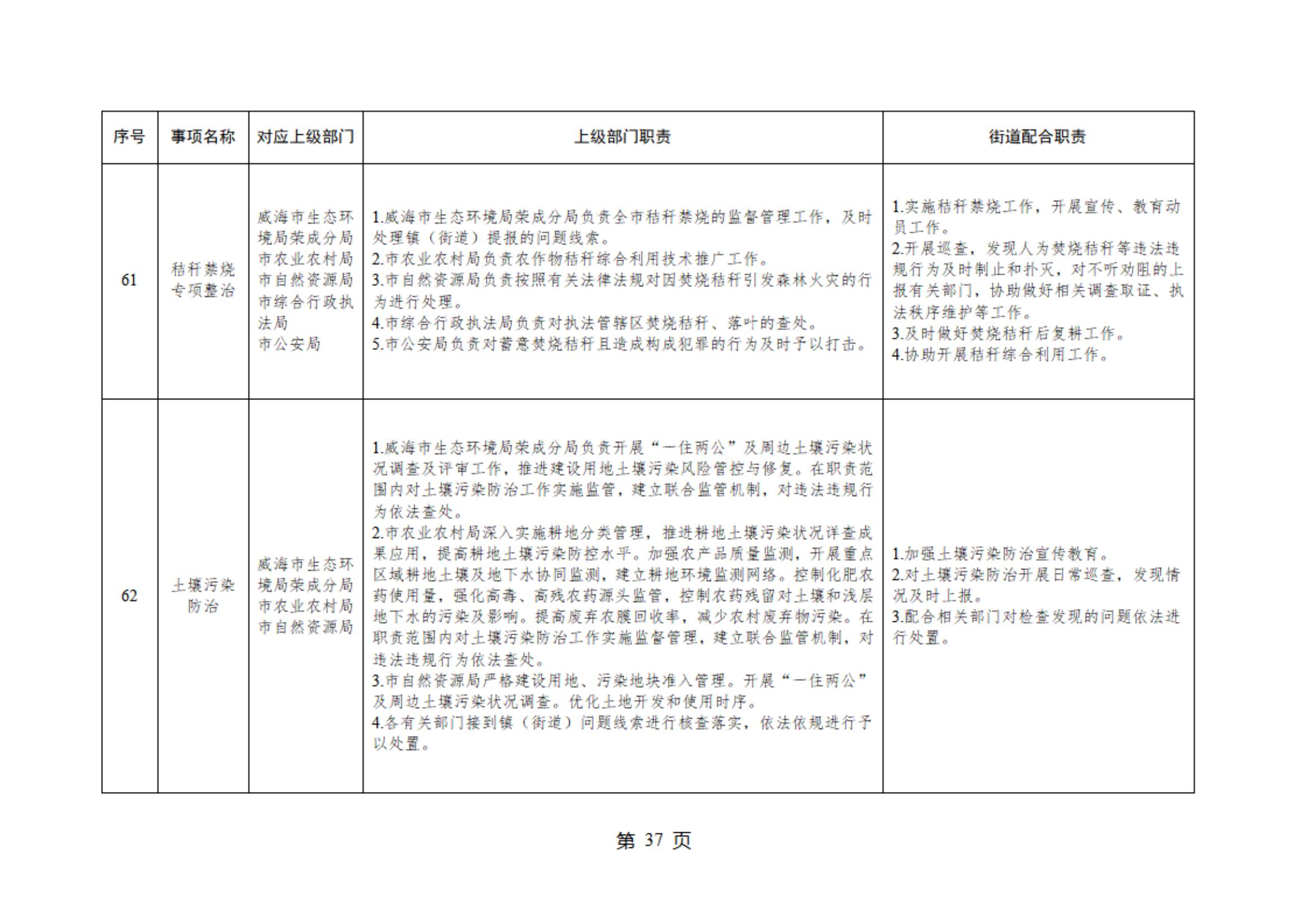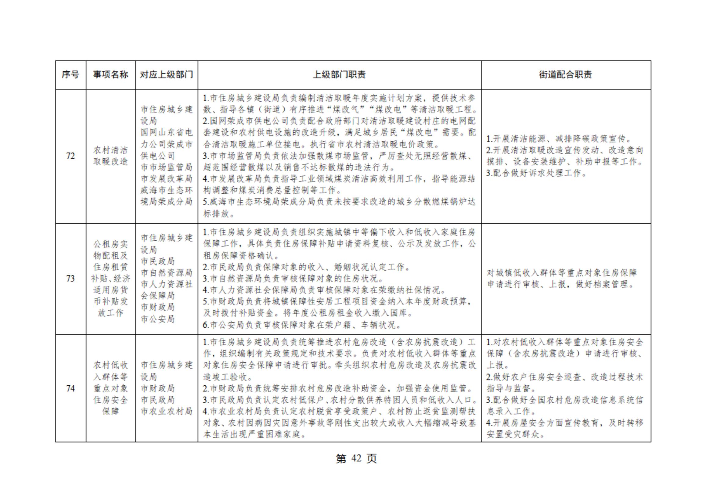 山东省威海市荣成市斥山街道办事处履行职责事项清单
