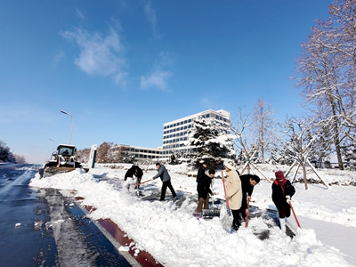 1月11日凌晨2时,市园林集团的推雪车辆先行作业,6时,组织机关干部及园林工人等,及时清除城区主次干道及道路两侧人行道板、公园广场等所负责的公共区域的积雪,“机械+人工”“清扫+拉运”同步进行。在清雪过程中,采取歇人不歇车的工作方式,确保城区所负责的道路畅通和居民出行安全。