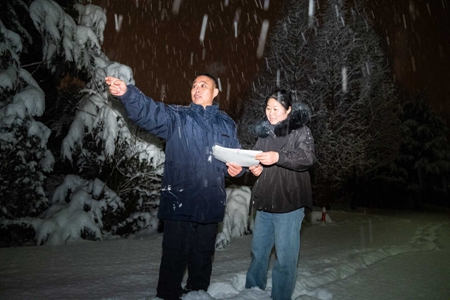 本轮清雪,市园林集团共出动清雪人员500余人次,铲车、自卸车、货车各类除雪车等各类清雪机械设备50余台次,对承担的悦湖路以南城区道路的推雪任务,以及4条主干道路、80多处公园广场、停车场的清雪及积雪外运。7时30分,基本完成一轮初步清雪作业。随后,市园林集团,根据后续降雪清雪情况,边下边清,确保市民出行安全,将降雪对市民工作生活的影响降到最低。同时,在滨海公园、樱花湖体育公园采取“适当留存”的方式,为游客和市民感受雪景留出空间,彰显城市的“温柔之美”。