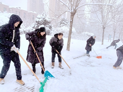 市人才发展集团工作人员积极开展清雪除冰活动。