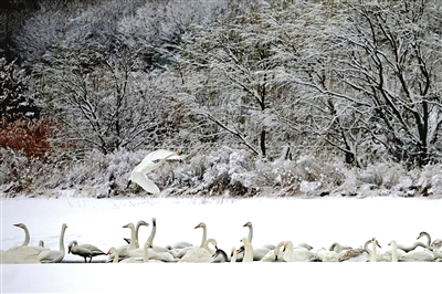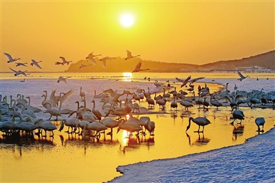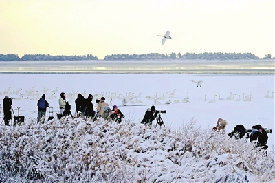 近日,我市迎来今年首场降雪,银装素裹的海岸湿地与翩跹起舞的大天鹅相映成趣。在天鹅湖,成群的大天鹅或悠然浮水,或振翅高飞,其优雅洁白的身影与雪雾弥漫的海岸线相得益彰,构成一幅灵动唯美的自然画卷。这不仅让各处天鹅栖息地秒变“冰雪童话世界”,更吸引了众多摄影爱好者与游客纷纷举起镜头,记录这充满诗意和活力的生态景观。