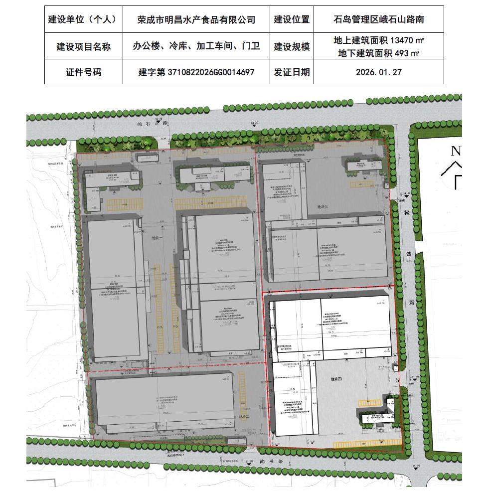 【批后公布】荣成市明昌水产食品有限公司办公楼、冷库、加工车间、门卫项目建设工程规划许可