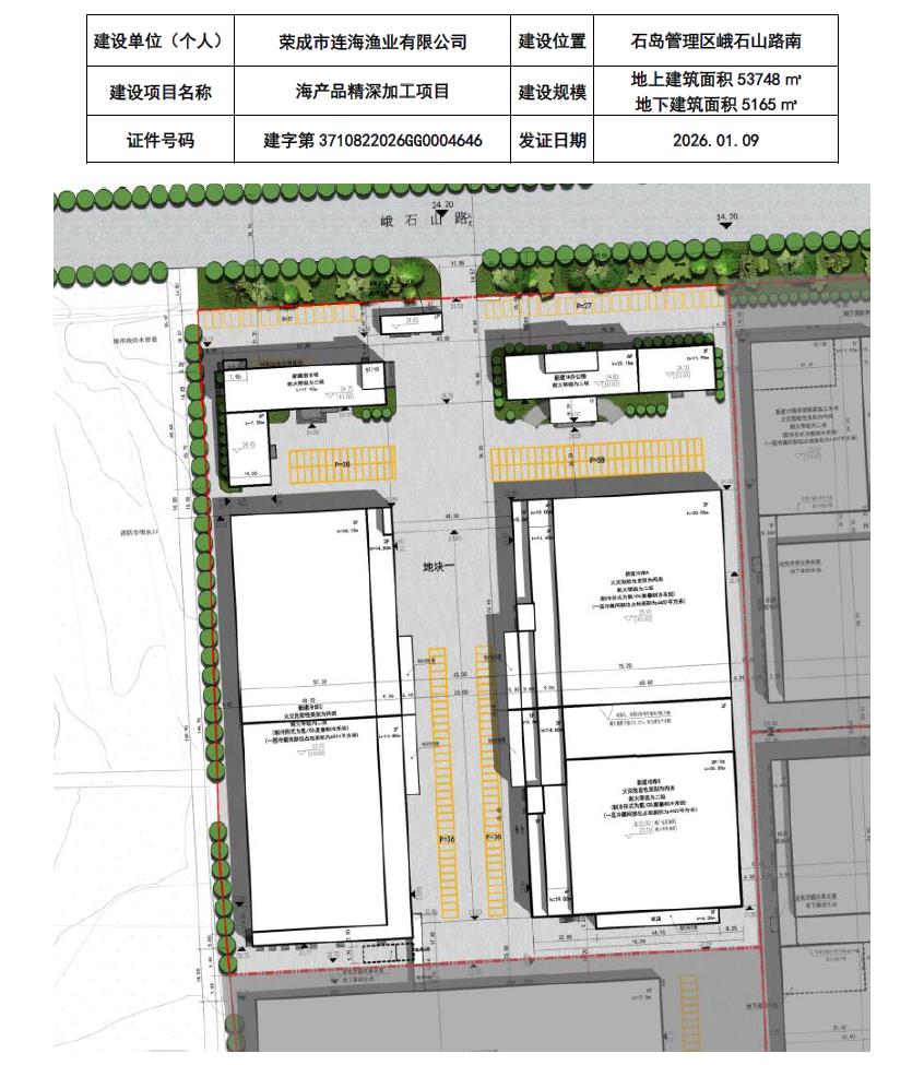 【批后公布】荣成市连海渔业有限公司海产品精深加工项目建设工程规划许可