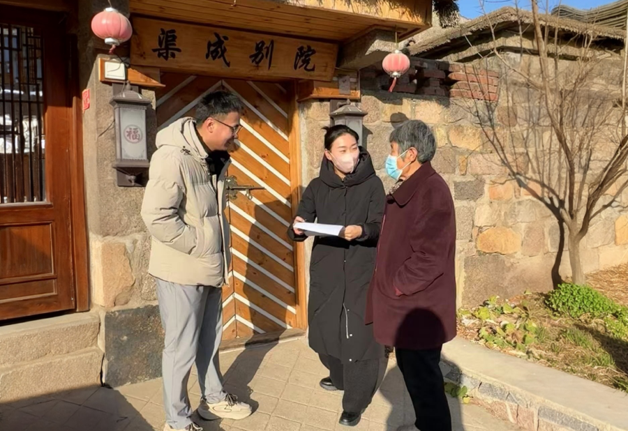 荣成市审计局在审计中,重点关注传统民居保护改造项目实施情况。审计人员聚焦规划设计、资金拨付、工程建设、后期运营等关键环节,通过查阅设计图纸、核对项目档案、现场勘查施工质量、走访群众等方式,全面核查项目建设成效,重点核实资金投入、使用与项目效益的匹配性,严肃揭示存在的问题。以精准有效的审计监督,推动传统民居保护改造规范实施、资金安全高效使用,切实守护传统民居风貌,传承弘扬优秀传统文化。图为审计人员在宁津街道渠隔村查看改造后传统民居的情况。