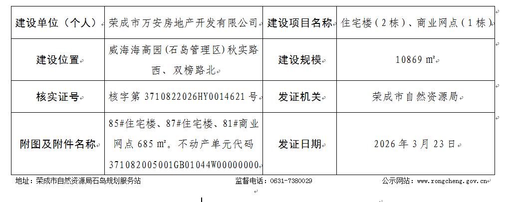 【批后公布】荣美御苑住宅小区二期工程住宅楼、商业网点建设工程竣工规划核实