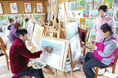 寒冷冬日,港湾街道牧云庵村的石头房画室内暖意融融。65岁的村民杨秀波与老姐妹们在画板上轻抹慢描,海浪、渔船、礁石渐次浮现。“你画我也画,越画越投入。”杨秀波说,村里约三分之二的妇女常来画室创作,一些人坚持每日作画。从灶台边到画板前,这群“渔家画嫂”的生活正悄然转变。据悉,目前全村900多人中,过半家庭从事书画、民宿等相关产业。