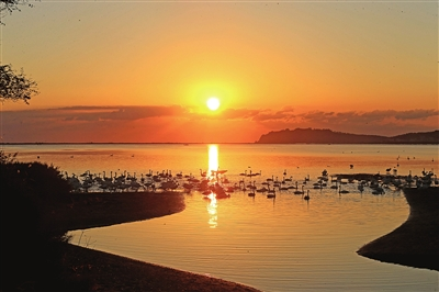 近日,在荣成大天鹅国家级自然保护区一角,数百只大天鹅在薄雾弥漫的湖面上游弋、追逐。晨光熹微中,大天鹅或引吭高歌,或展翅翱翔,宛若一场静谧而灵动的“水上芭蕾”。大天鹅在朝霞中舒展的身影,勾勒出人与自然和谐共生的诗意画卷。