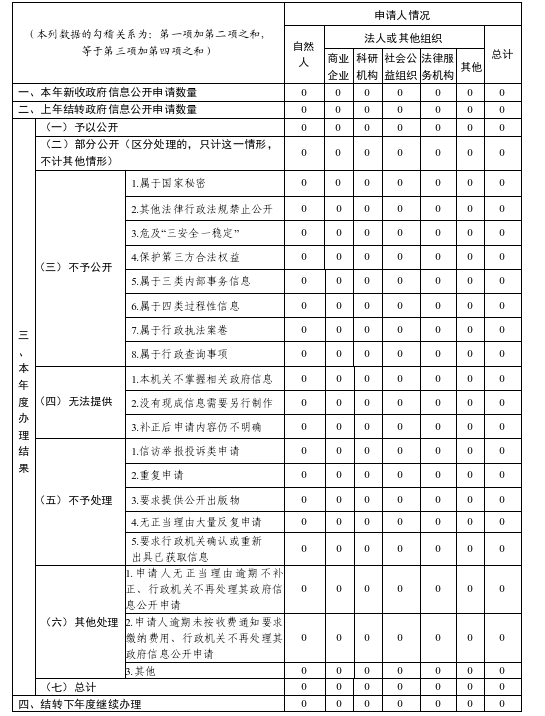 三、收到和处理政府信息公开申请情况