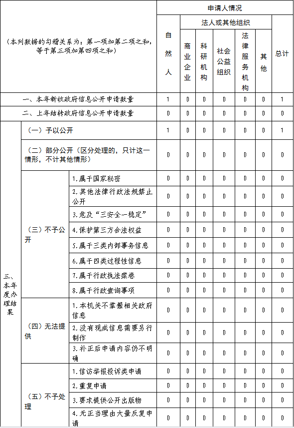 三、收到和处理政府信息公开申请情况