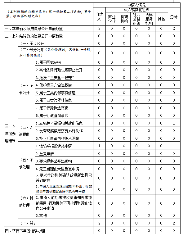三、收到和处理政府信息公开申请情况