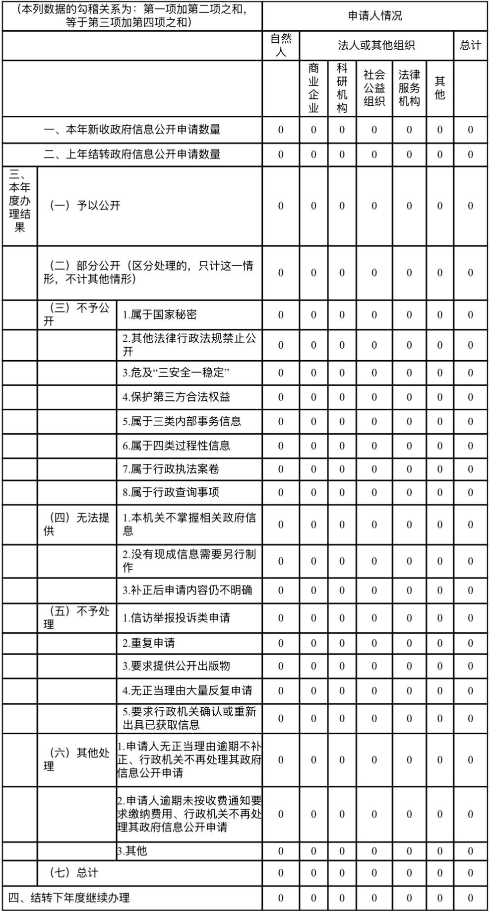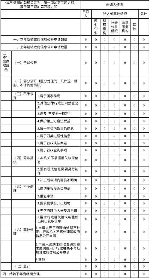 三、收到和处理政府信息公开申请情况