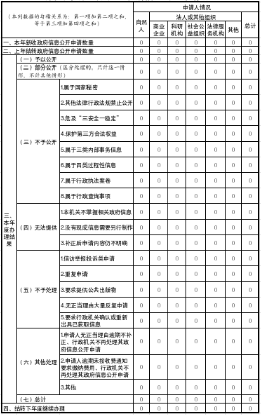 三、收到和处理政府信息公开申请情况